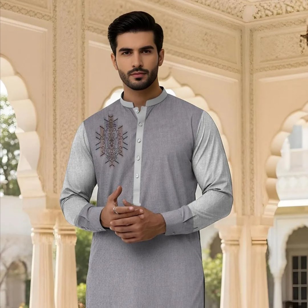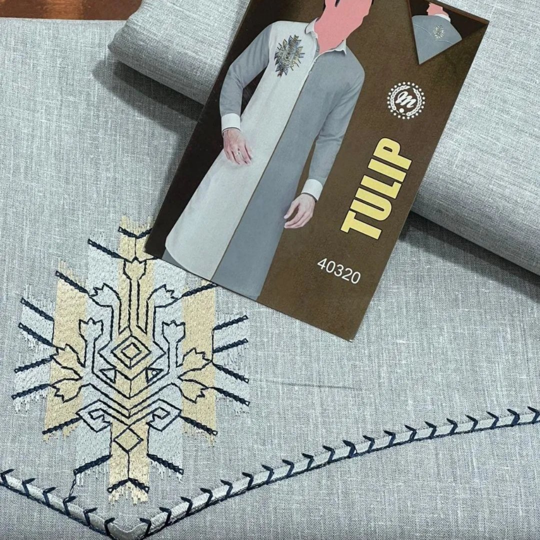 Upgrade your summer wardrobe with this elegant Silver Embroidered Paper Cotton Unstitched Suit, designed for mens who love comfort with style. Crafted from premium paper cotton fabric, this suit is lightweight, breathable, and ideal for hot summer days, keeping you fresh and comfortable all day long.